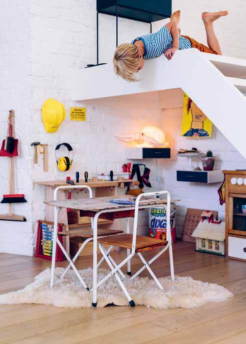 For Katrien, having children also means taking a more practical approach to the decor, creating little nooks and snug corners so that everyone has their own space, and investing in baskets and storage furniture to collect all the ‘stray’ toys. A playroom with a television was created for the children where they can spend time alone during the day, or play when the weather’s bad.