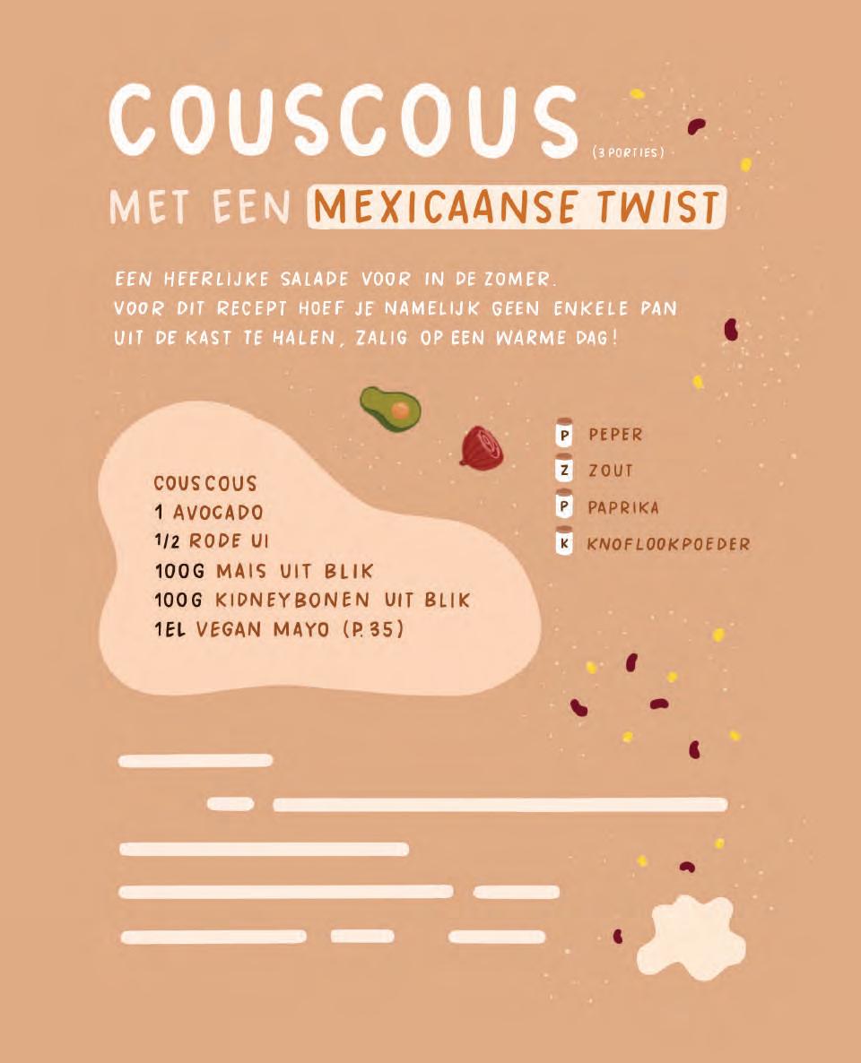 Giet de mais en kidneybonen in een vergiet en spoel ze af met water. Meng alles onder elkaar en werk af met de vegan mayo. 93