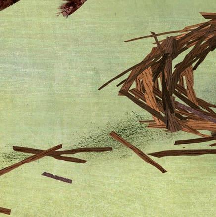 Huh, wat is dat? Wat schuilt er achter die struik? Die spiedende blik, zo kijkt mijn lie e toch niet? En die zwiepende staart… Een zwiepende staart? ‘Maar jij bent mijn lie e helemaal niet! Ga weg. Ga weg, raar beest. Dit is mijn nest, het is voor mijn… Au! Waarom deed je dat? Dat doet pijn! Stop, hou op. Hou op, zeg ik toch. Au, au, au! Niet doe–’
