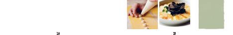 Met de klok mee van boven: kraampjes bij Salone del Gusto in Turijn; een cocotte van prei, gepocheerd ei en zwarte truffel; een chef-kok vult ravioli met kaas en hazelnoten