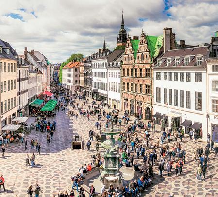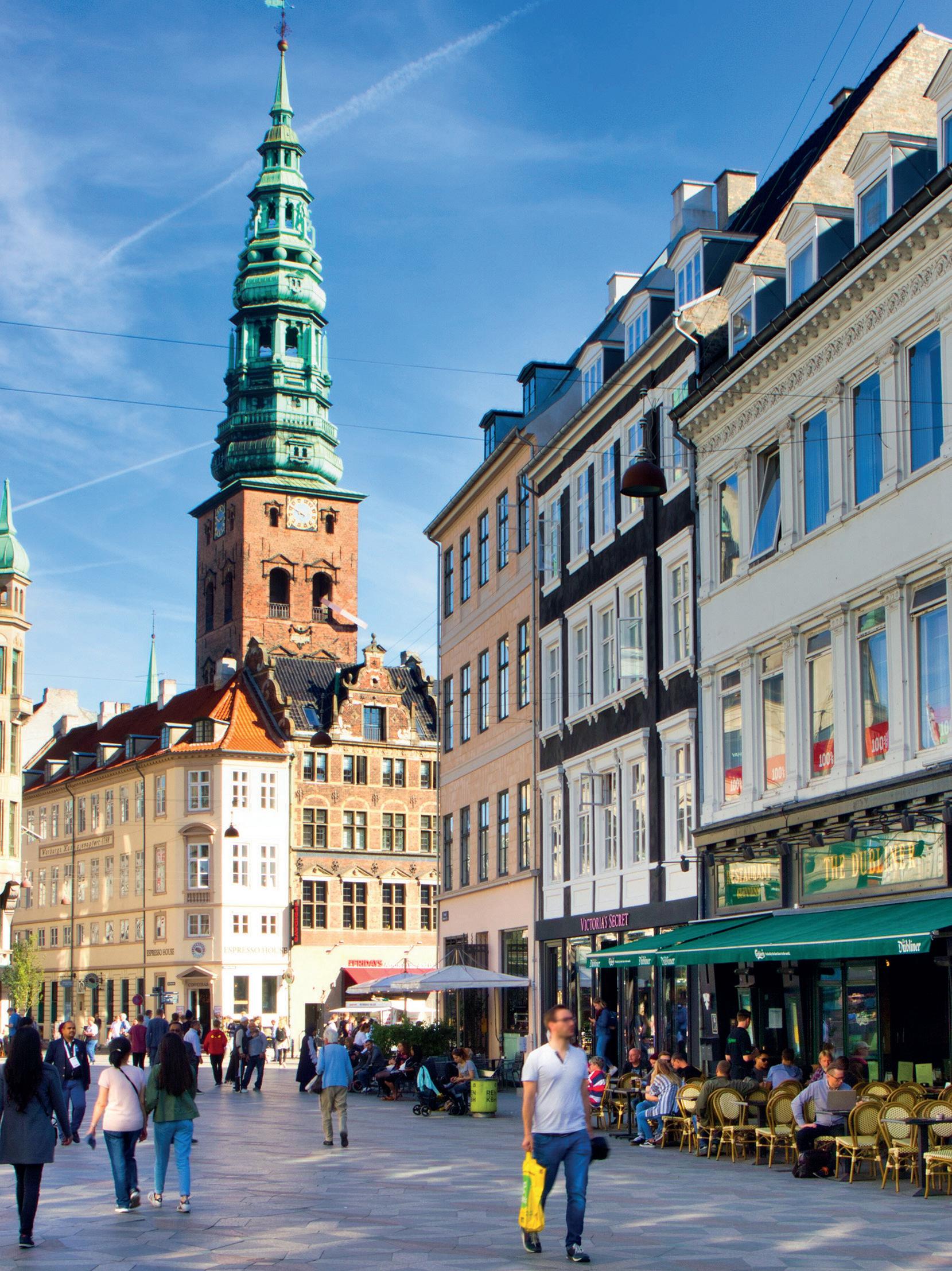 Loop te voet langs de Strøget , de verkeersvrije straat die de oude stad aa (blz. 32) doorkruist, van het stadhuis tot Kongens Nytorv, het Nieuw Koninklijk Plein. Verken ook de zijstraatjes en houd even halt voor een biertje op het charmante Gråbrødetorv aa (blz. 32). Beklim de Rundetårn a (blz. 35) voor een panoramisch uitzicht over de stad (en op Zweden bij mooi weer). Lunch in de naburige Torvehallerne a (blz. 65).