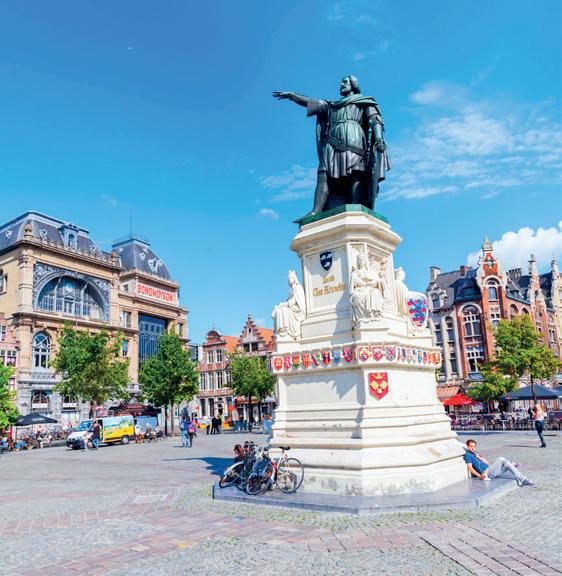 Keer terug naar de Graslei/Korenlei (of ga naar de Vleeshuisbrug) voor een boottocht (blz. 20) met gids. Het is een charmante en snelle manier om de geschiedenis van de stad te leren kennen. Laat u door de lift tot in de toren van het belfort aaa (blz. 43) brengen, voor alweer een adembenemend uitzicht over de Arteveldestad.