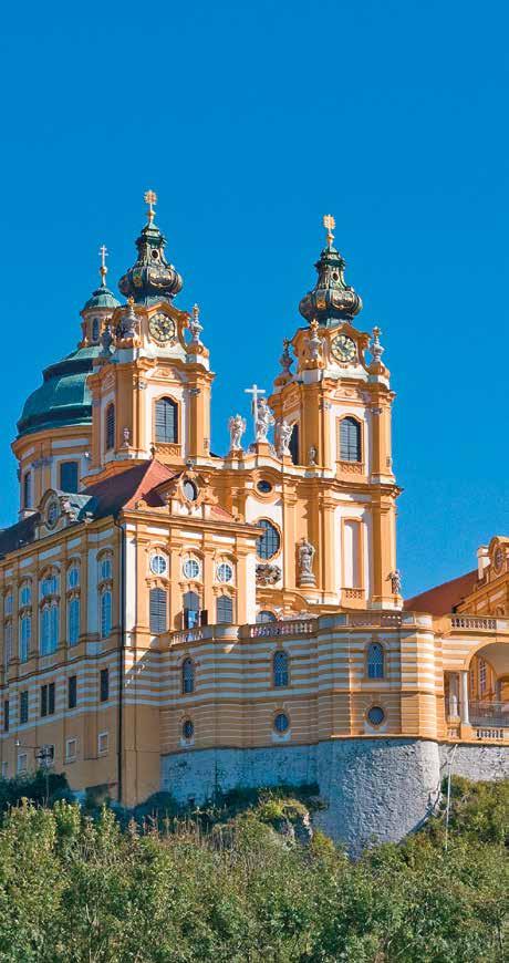 In de Wachau is de Donau op zijn mooist, in een schilderachtig landschap vol wijngaarden en abrikozenbomen, waar de abdij van Melk als een barok meesterwerk bovenuit torent. Zie blz. 211 en 214.