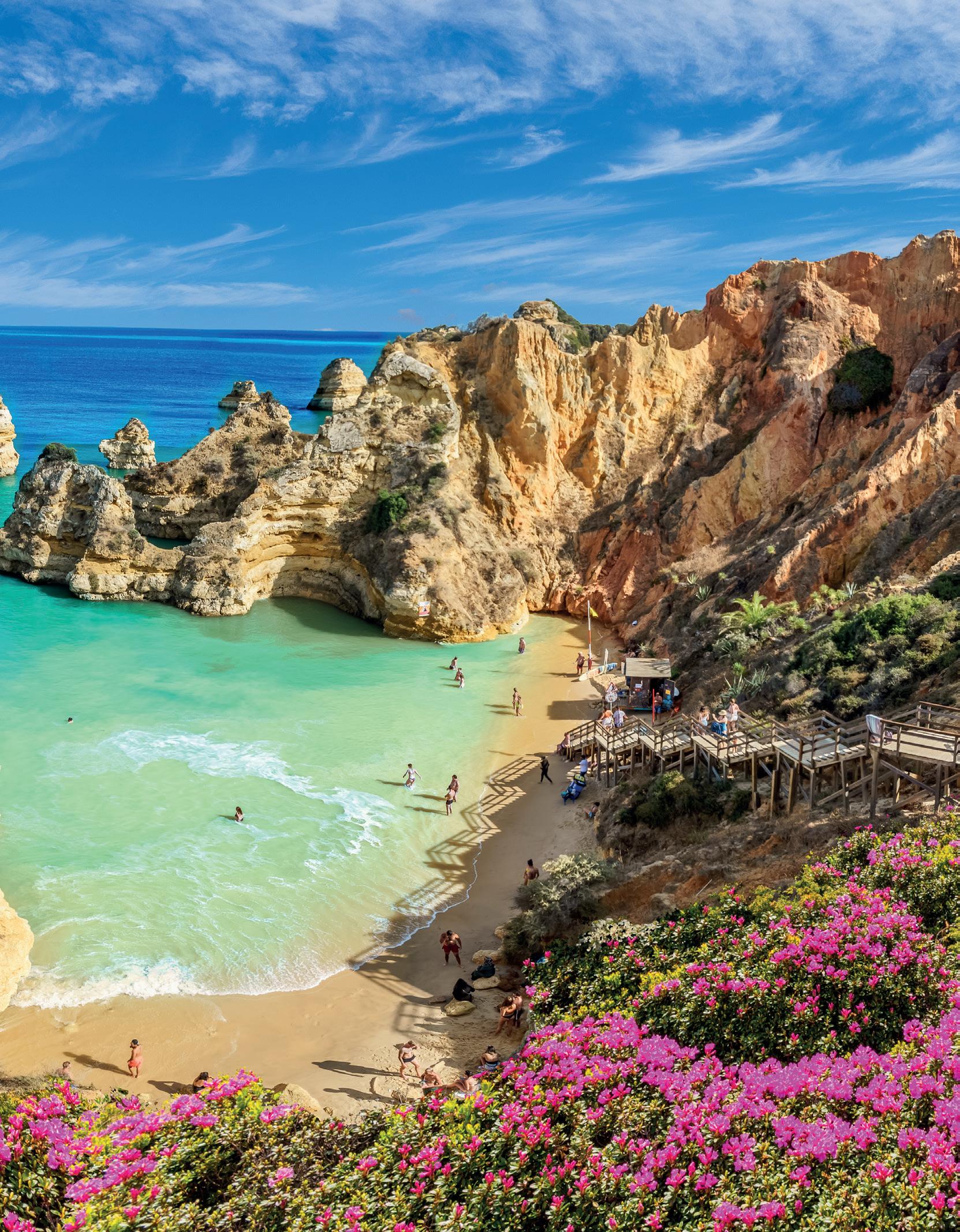 Praia da Marinha Wit zand, helder water, goudkleurige rotsen
