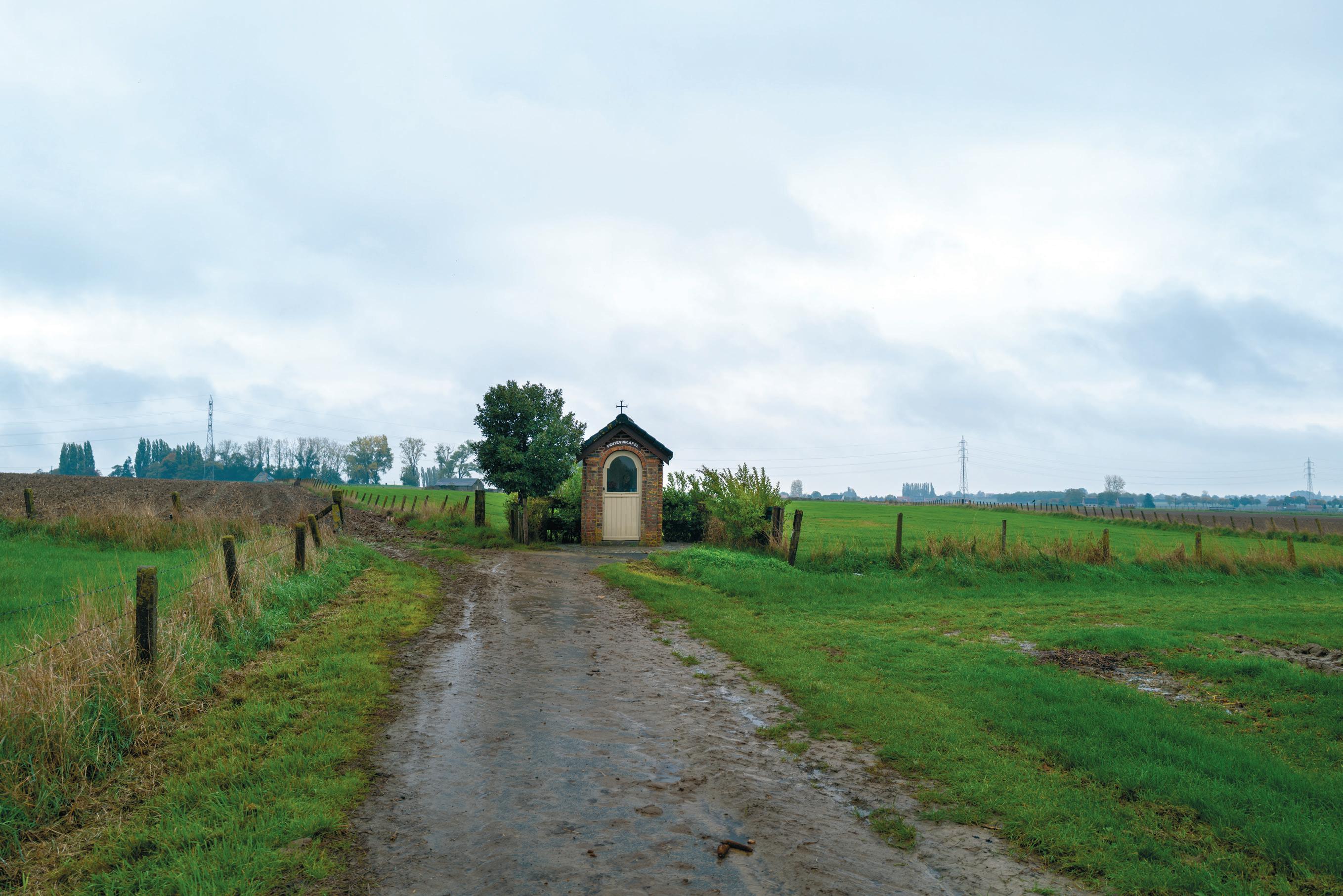 Het klinkt als Vlaams-Brabant, maar we zijn in West-Vlaanderen. Onze-Lieve-Vrouw waakte over Wakken toen hier, begin achttiende eeuw, de pest door de dorpen trok. Veel meer dan bidden konden de Wakkenaars niet en in 1704 vond een eerste bedevaart plaats. De ziekte werd bedwongen, de dankbaarheid was groot. Eeuwen later, in 1962, bouwden de gelovigen een kapel. Iets later uitgebreid: muren, zitbanken, plaats om stil te blijven. Letters herinneren aan wat zich hier afspeelde: ‘Hier ontstond ten jare 1704 / de jaarlijkse bedevaart naar O.L.Vrouw van Halle / dewelke trouw in ere blijft / vroom Wakken 1962.’ Op de woorden zit het patina van de tijd, maar Wakken blijft waakzaam.