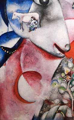 Marc Chagall werd geboren in Rusland, maar schilderde Ik en het dorp toen hij in Parijs in Frankrijk woonde. Het droomtafereel is een combinatie van jeugdherinneringen aan zijn geboortedorp, Joodse volksverhalen en zijn gedachten aan de natuur. Chagall was geïnspireerd door het kubisme en het fauvisme (zie blz. 152–153), wat je kunt zien aan de hoekige vormen en het ongebruikelijke kleurenpalet.