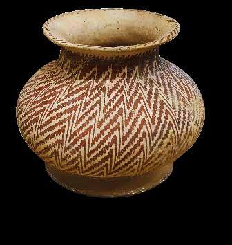 De Hohokam, de voorouders van inheemse Amerikaanse volken als de Tohono O’odham, Pima en Pueblo, leefden in het huidige Arizona in de VS en in Noord-Mexico. Hun aardewerk was van lichtbruine klei gemaakt. Het werd vervolgens versierd met rode patronen, zoals het zich herhalende geometrische patroon op deze pot.