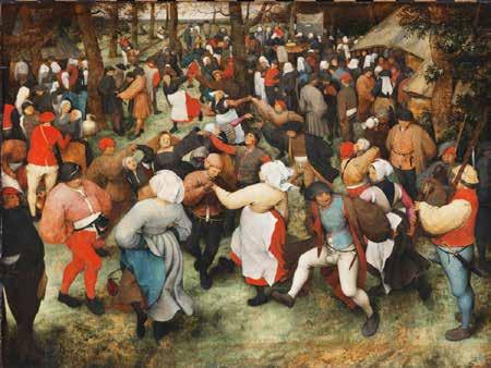 De boerenbruiloftsdans, van de Nederlander Pieter Bruegel de Oude, geeft een beeld van de vrolijke sfeer bij een dorpsfestijn. Mogelijk is het bedoeld als kritiek op de autoriteiten, die energiek dansen destijds afkeurden.