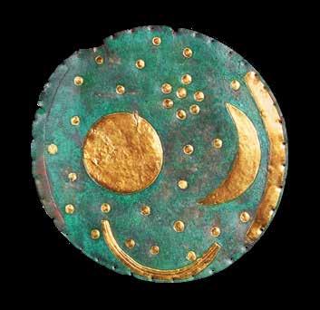Deze zeer oude bronzen schijf uit Nebra, in het huidige Duitsland, is de oudste sterrenkaart die we kennen.