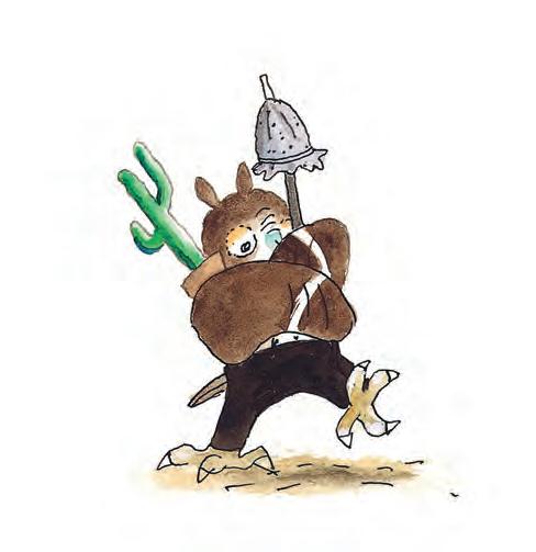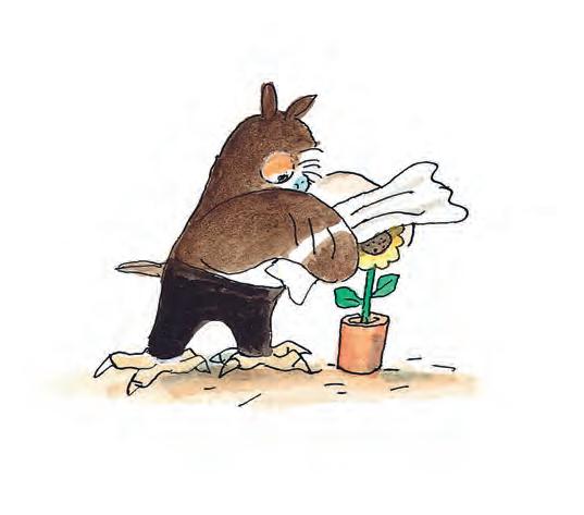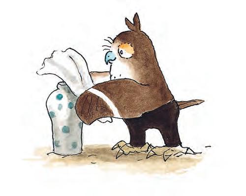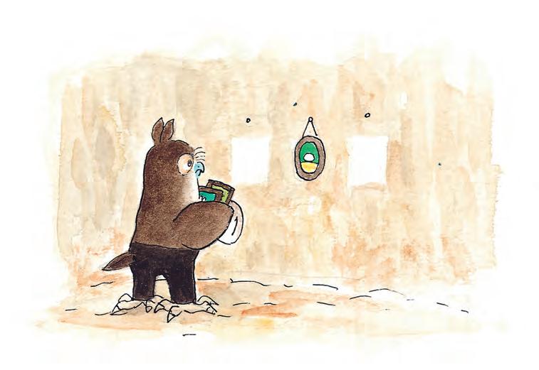 Uil is klaar met afstoffen. Tevreden kijkt hij rond.