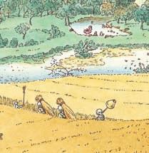 Als je goed zoekt, vind je boeren die in een rijtje dansen. Die dans heet de farandole. Ook de kinderen konden meedansen, want de danspasjes zijn gemakkelijk. Vandaag wordt de farandole nog steeds gedanst, vooral in Frankrijk.