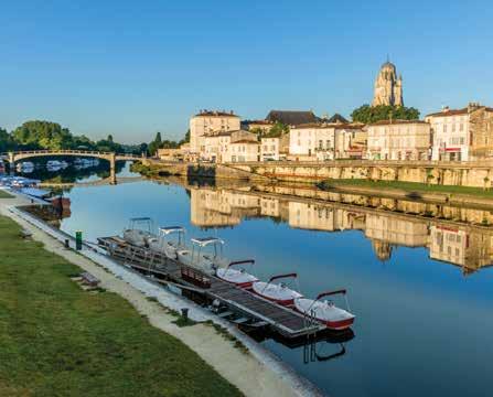 Rondleidingen – € 7 (tot 12 jaar gratis) - inl. bij het toeristenbureau. w Als je de streek bezoekt en langs de Charente reist, dan is de Pass Découverte Cognac-Saintes (zie blz. 38) de interessantste optie. De aanlegsteigers met rondvaartboten en kleine huurbootjes, en ook het vertrekstation van het toeristentreintje vind je op de rechteroever van de Charente, op de Place Bassompierre en de Esplanade Pierre-Mendès-France (B2).