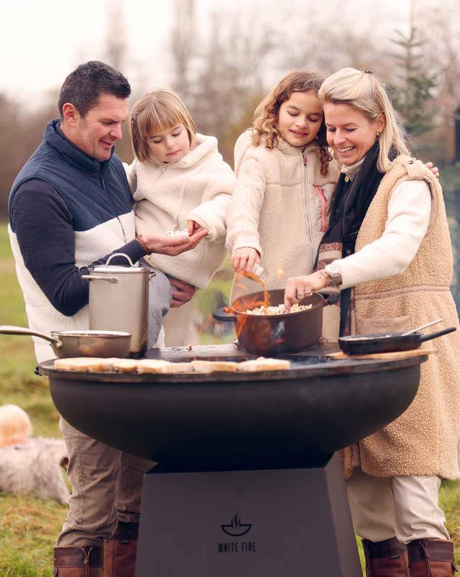 Daarnaast ben ik al jaren een fervente hobbykok, bij mij thuis, voor familie en vrienden. Ik kreeg het van mijn beide ouders met de paplepel ingegoten. Koken is voor mij pure ontspanning! Zeker buiten in de natuur! Buitenvuren (type BBQ met grill én teppanyaki zoals White Fire, Ofyr…) zijn vandaag de dag nog steeds ongelooflijk ’hot’. Dat merk ik ook aan de verkoop van dergelijke toestellen in onze zaak. Ik voelde al een aantal jaren dat klanten vragende partij waren voor een kookboek speciaal gericht op het koken op dergelijke buitenvuren. De meeste mensen associëren BBQ’en nog steeds met een worst, een brochette en een goed stuk vlees. BBQ’en is echter zoveel meer! Met Fire Dining wil ik aantonen dat ’fine dining’-receptjes ook perfect mogelijk zijn en net dat tikkeltje meer geven aan je BBQ-middag of -avond. Ik overtuig de lezer er bovendien graag van dat je dankzij een eenvoudige ’mise-en-place’ de hele avond met je gasten kunt tafelen, proeven, sharen, sfeervol dineren… en vooral keuvelen aan tafel of rond het vuur. Het is mooi meegenomen dat dit type buitenvuren uiterst gebruiksvriendelijk is op het gebied van onderhoud. Meer daarover in de inleiding van dit boek. Alle gerechtjes uit het boek zijn gemaakt om te ’sharen’. Van heerlijk fingerfood over originele side dishes en gerechten met vis- en schaaldieren, vlees, wild, gevogelte tot kaas en zoete afsluiters. Een dikke ’merci’ aan vriend en meesterbakker Brecht Van Poucke van bakkerij/patisserie Painture uit Oedelem. Hij schreef voor mij de zoete dessertjes uit en verzorgde alle broodcreaties in het boek. Daarom: oneindig veel dank! En ja, dus… ook ’fine’ desserts zijn perfect mogelijk/haalbaar op de BBQ. Ga de uitdaging aan… Je zult in vuur en vlam staan!