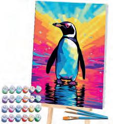 Schilderen op nummer ‘pinguin’. Bevat 1 canvas met nummers (30x40cm), 3 penselen, 24 potjes niet-giftige acrylverf. € 14,99
