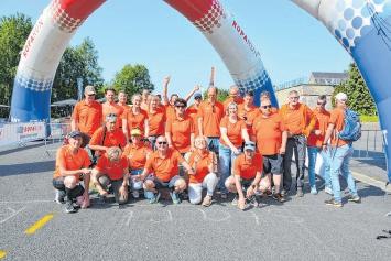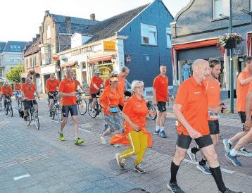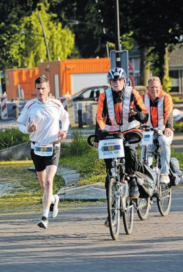 zorg. De groep mannen en vrouwen, lopers, fietsers, chauffeurs, masseurs, cateraars en de teamcaptain gaan er vol voor. “Het gaat heel goed”, zegt captain Piet Willeboordse als ze ruim over de helft van de route in Dongen aankomen. Piet is trots, heel trots op zijn fantastische team.