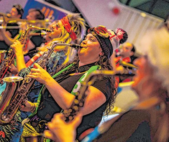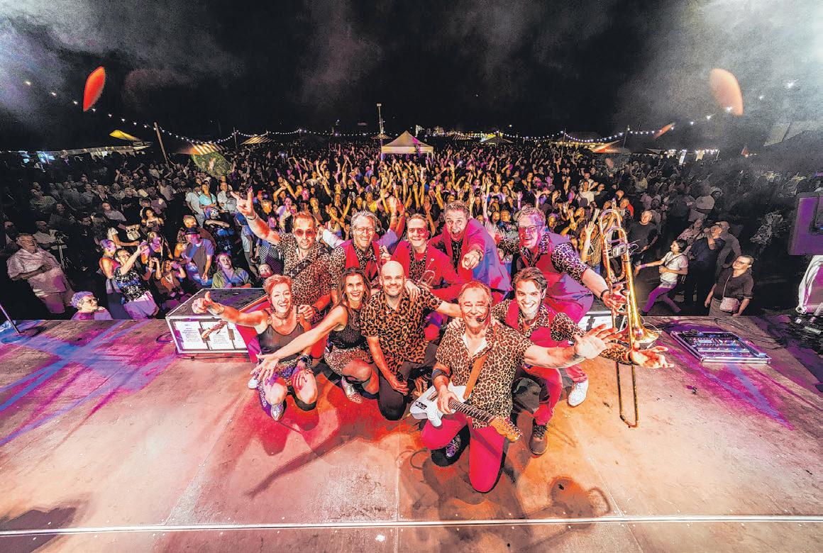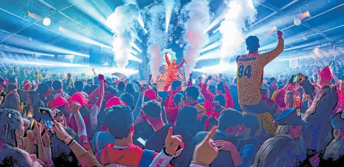 Luc Vaesen en de dames van De Valse Kraaien brengen samen met het orkest hun eigen, vertrouwde carnavalsenergie mee op het podium.