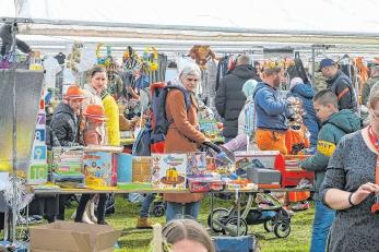 Goed, het kwam misschien ook doordat de kraampjes niet helemaal stonden zoals gepland, of groter waren dan anders, maar dat het druk was op de rommelmarkt kun je hier wel zien. Je kon er zowat over de koppen lopen. Het zonnetje hielp daar natuurlijk ook volop aan mee. Verderop in dit weekblad een ietsje uitgebreider verslag met foto’s, van Casper van Aggelen natuurlijk.
