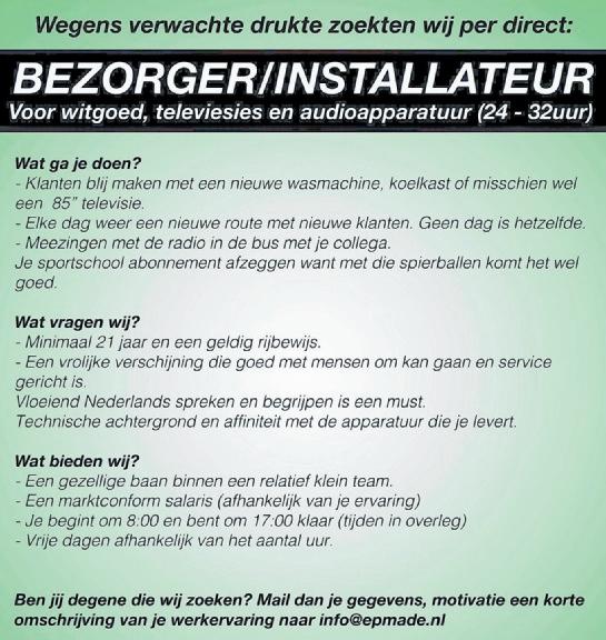 Particuliere advertenties en Zoekertjes opgeven via www.uitgeverijemdejong.nl, kies voor aanleveren.