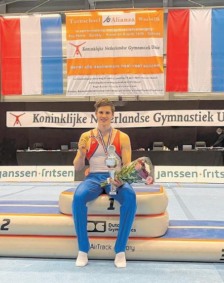 David en Jailey hadden ook senioren Max (1e divisie) en Ralf (2e divisie) toestelfinales. Max behaalde een 7e plaats op brug en rek, daarnaast werd hij knap 4e op voltige. Ralf werd 6e in zijn voltige finale met een mooie oefening. David startte zijn finales al met een mooie 2e plaats op vloer. Helaas een val op voltige, maar toen werd het tijd voor een echte revanche. Op zowel ringen, brug en rekstok was David de beste en heeft daarmee drie gouden medailles gewonnen. 4 maal Nederlands Kampioen voor David, wat een klasse.