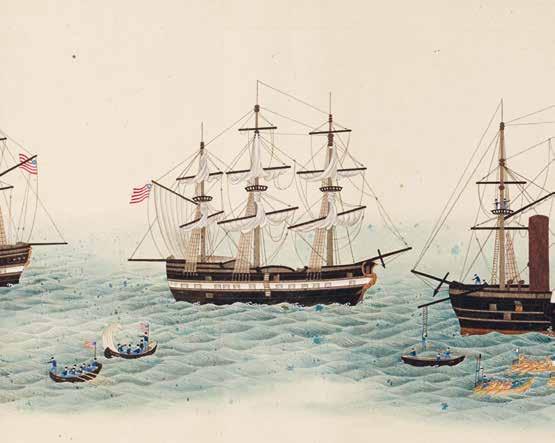 Detail from a painted silk scroll showing the return of the reinforced American squadron to Japan in 1854, 1854-1858. British Museum collection. 2013,3002.1