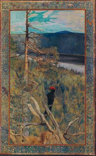 14 Akseli Gallen-Kallela, De grote zwarte specht, 1893, gouache en aquarel op marouflé papier op doek, 145 × 90 cm, Finnish National Gallery Collection, Ateneum Art Museum, Helsinki.