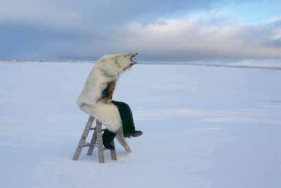 Sometimes the risks are great, but that’s really also part of it. Perhaps I now dare to take fewer risks because I have a child. At that time I was still quite open-minded. After that incident the people there were far more prepared to help me and I also had a lot more motivation. I was aware of the urgency and took the photo Polar Bear, the one with the polar bear fur. I wanted to show the tragedy of that place, with that very heavy sky and with the pose of the bear sitting like that. Just look at that bare leg sticking out. In spite of everything it does have something light-hearted about it.’