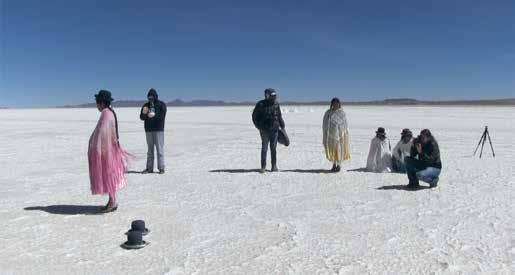 ‘I had heard of Gastón Ugalde (1944-2023), a Bolivian artist who regarded a green lake as his workspace. For example, he invited Ana-Maria Vera (1965), a DutchBolivian pianist to play on a raft he had built on the water. I wanted to go there – I wanted to meet him. The New York Times dubbed him the ‘Andy Warhol of the Andes’, because he had a studio with many people who worked for him. He had lived and studied in New York and in Canada; he was completely internationally-orientated. It was fantastic to work with him. Sadly he is no longer with us. I’d been to see him in Bolivia about eight times, for longer periods. I also travelled with him a lot. We often went to the white salt flats of the Andes, really high up, around 3,650 meters, and extremely cold. It’s many hours’ drive from the capital La Paz. Because it is so high, the skies are so incredibly beautiful – that extreme blue is amazing. We were always accompanied by his assistants, who came from the region. That also made it easier for me to make contact with them; the people there are reserved – life is hard and poor. Gastón knew people everywhere. We had two four-by-fours and took everything we needed on their roofs; we often also worked together.