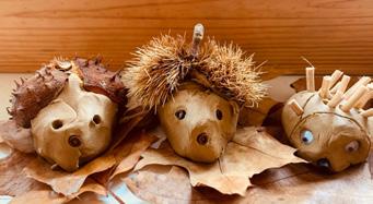 Tijdens de wandeling in het bos vond je allerlei herfstvruchten en materialen. In een aantal knutselopdrachten kun je nu met je verzamelde schatten aan de slag.