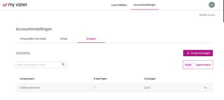 Log in en ga naar de accountinstellingen in My VAN IN. Kies het tabblad ’Groepen’. Daar heb je een overzicht van de verschillende klassen waaraan je lesgeeft. Voor elke klas voorzien we een code die elke cursist uit deze klas kan ingeven om zijn/haar account te koppelen aan de school. Zit een cursist in meerdere klassen? Het volstaat om de cursist zich te laten koppelen via 1 klas. Hij/zij wordt automatisch ook gekoppeld met de andere klassen.