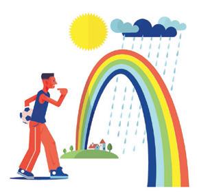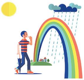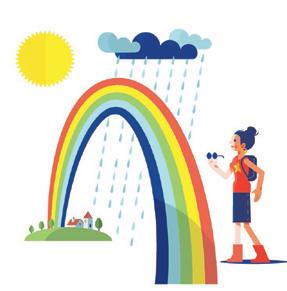 8 In de natuur zie je de opsplitsing van het witte zonlicht in de ROGGBIV-kleuren bij een regenboog.