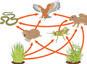a Maak een woordspin door vanuit het centrale woord blauwe pijlen te trekken naar de afbeeldingen waarop een organisme te zien is.