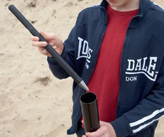 13 Vul het gemaakte gat weer op met de grond. Doe dat in de juiste volgorde: wat je het laatst uit het boorgat hebt weggehaald, moet er als eerste weer in!