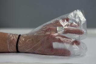 d Schud de keukenhanddoek uit boven een zwart blad. Noteer wat je ziet.