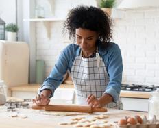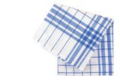 - Je schudt een stofdoek en een keukenhanddoek uit boven een zwart blad.