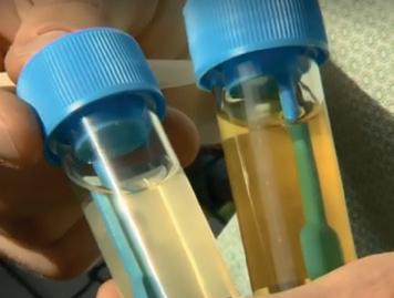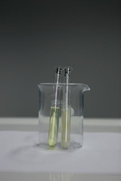 8 Bekijk de vloeistof in de maatbeker. Noteer wat je ziet bij waarneming 4