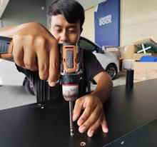 2 Plaats de maatcilinder op een vlakke ondergrond zoals je tafel.