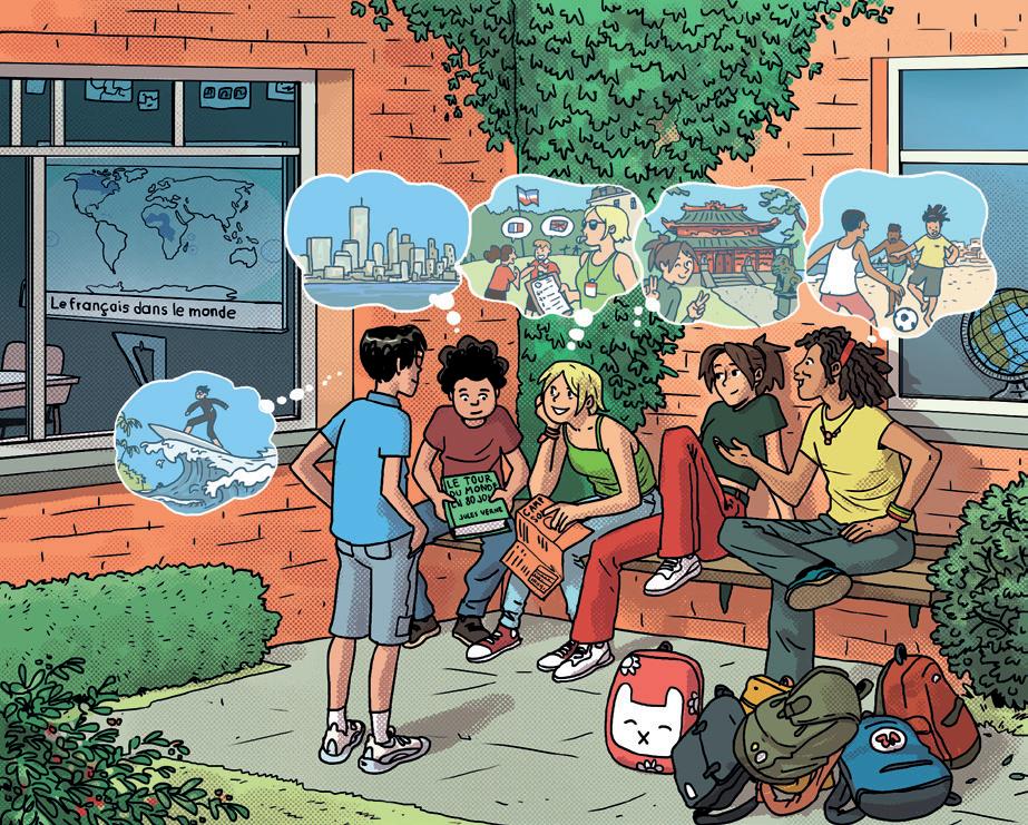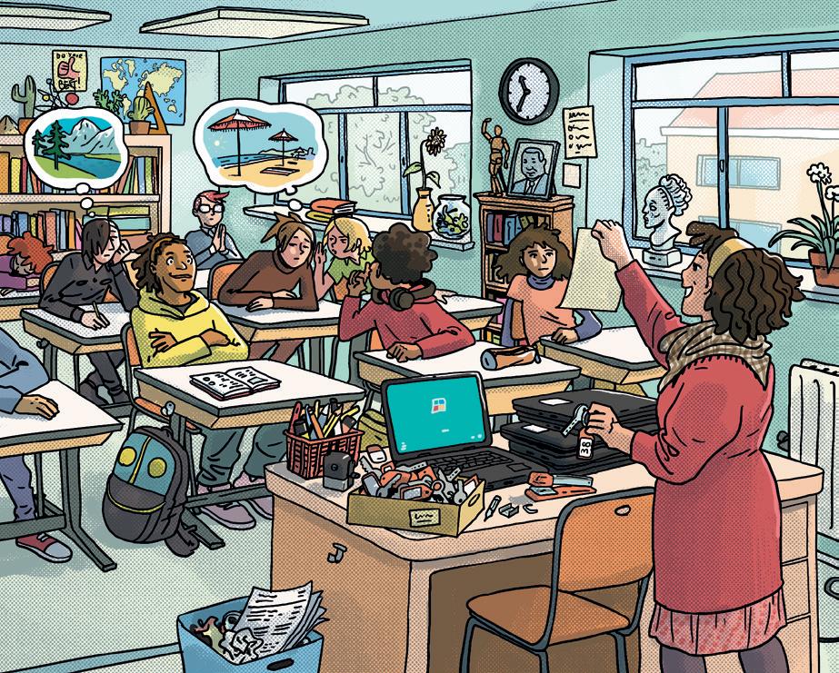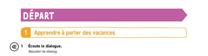 In Départ kom je meer te weten over Juliette, Adil en hun vrienden. In dat deel leer je vooral luisteren en lezen. Zo krijg je de nieuwe leerstof aangebracht.