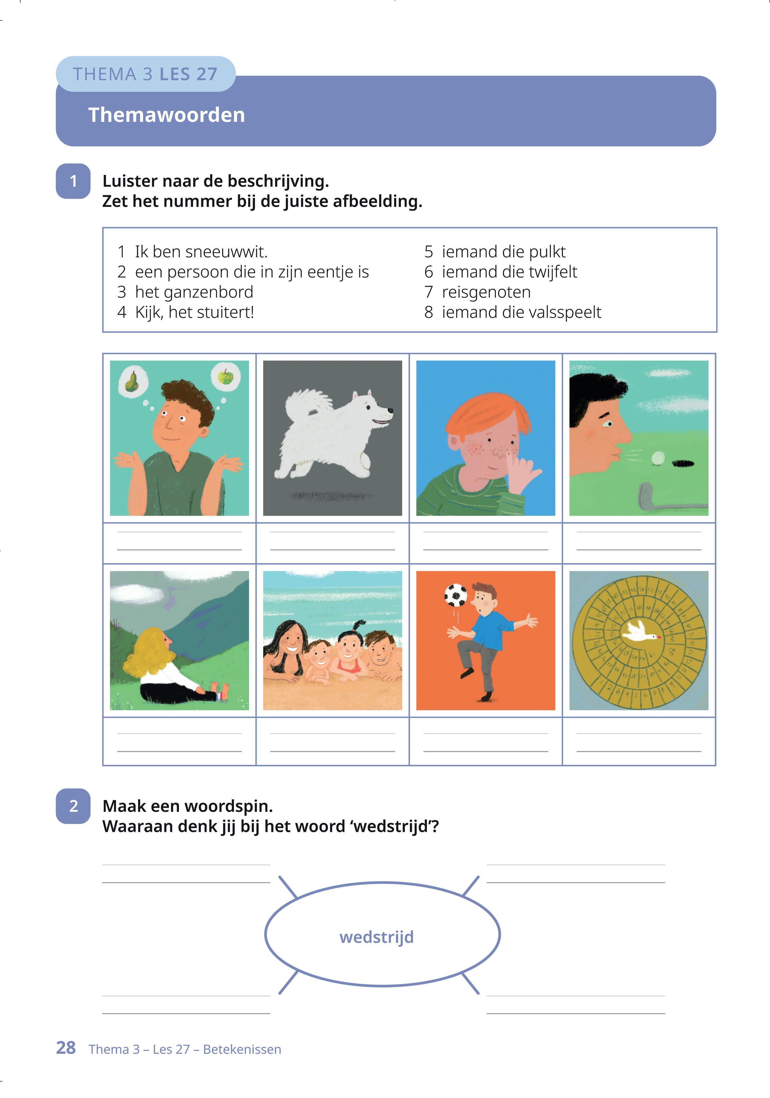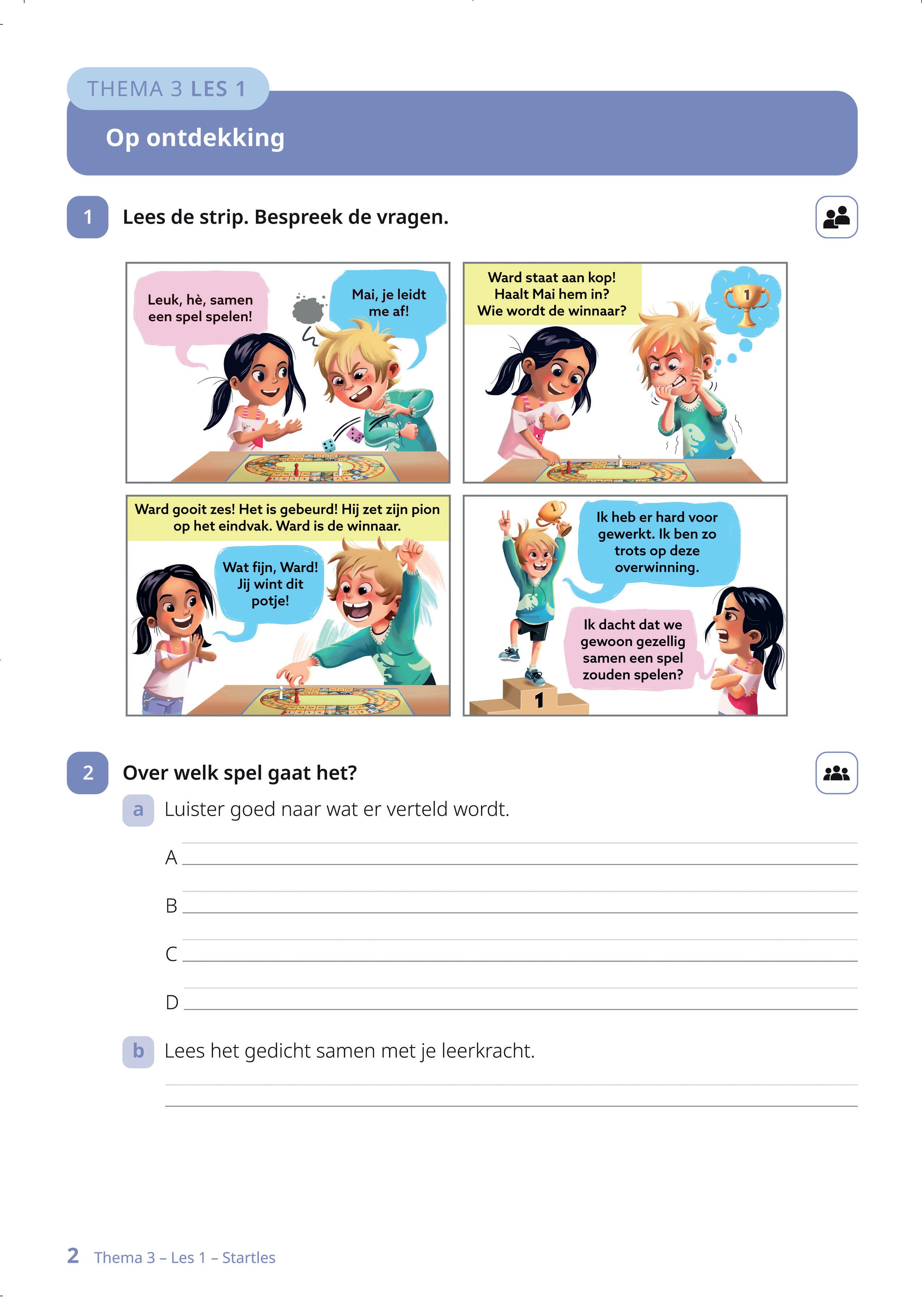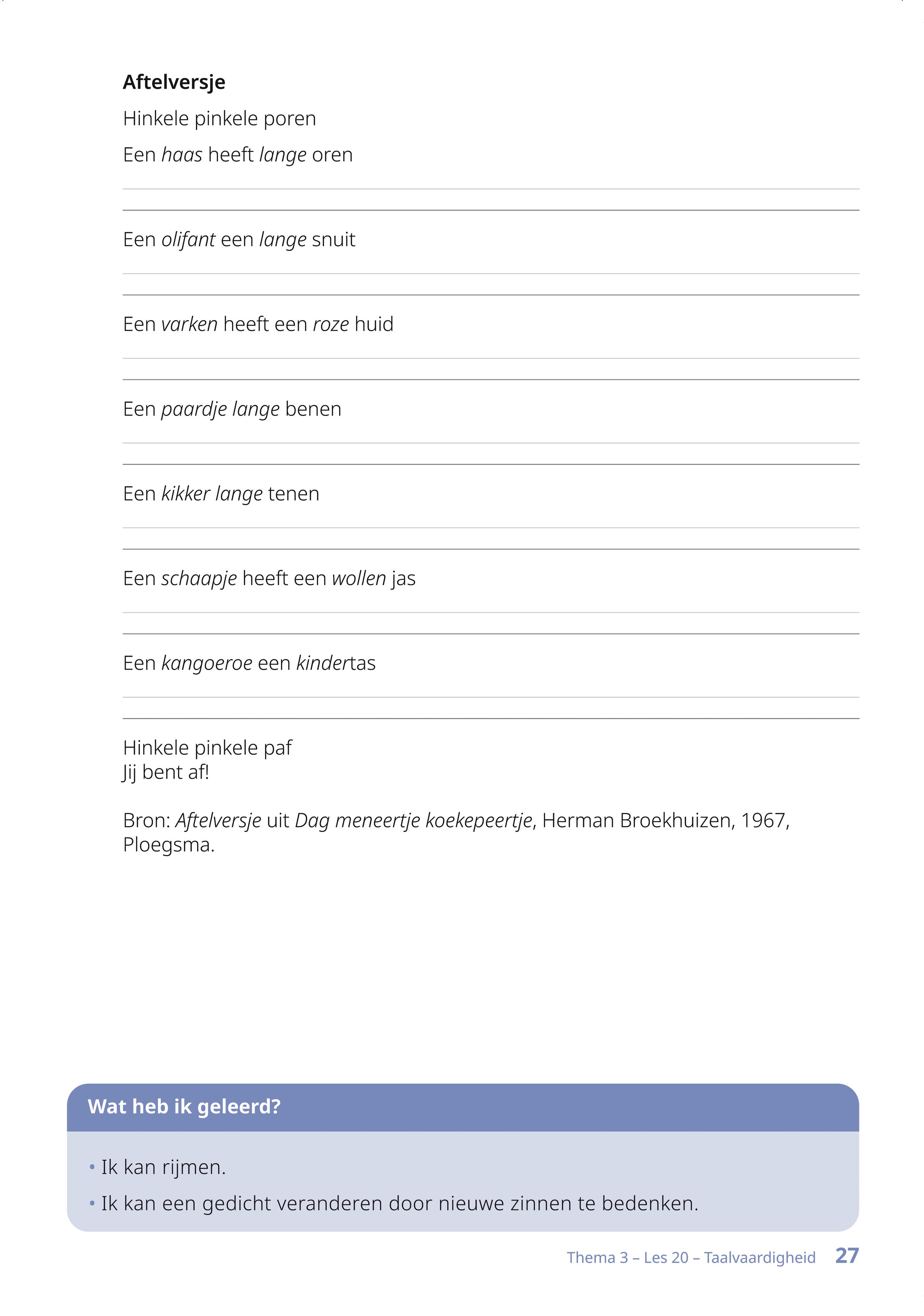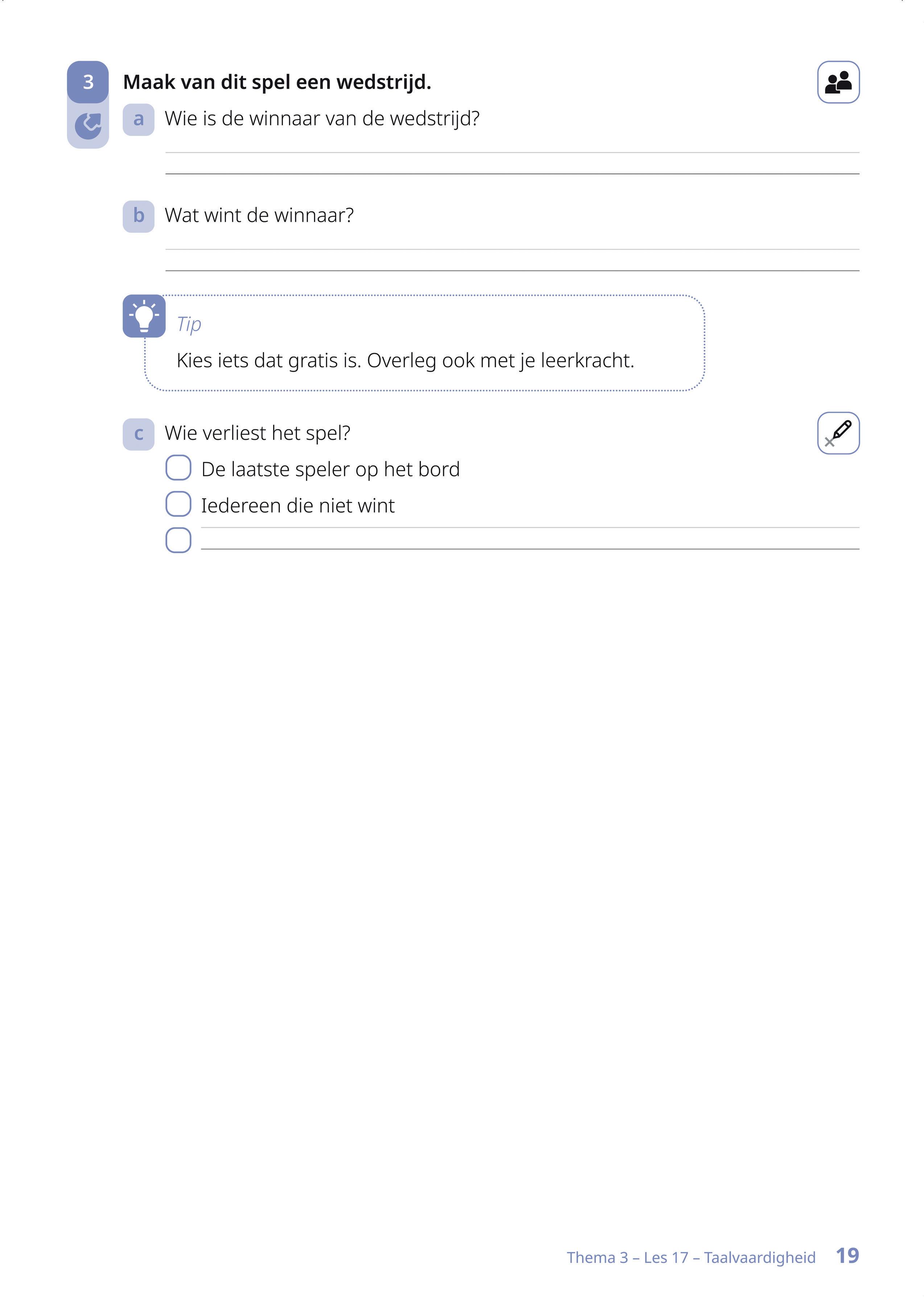 Op het einde van de les bespreek je de mate waarin je leerlingen de lesdoelen bereikten. Op de herhalingspagina duid je samen aan wie er tijdens de herhalingsweek nog extra oefening rond die doelen kan gebruiken.