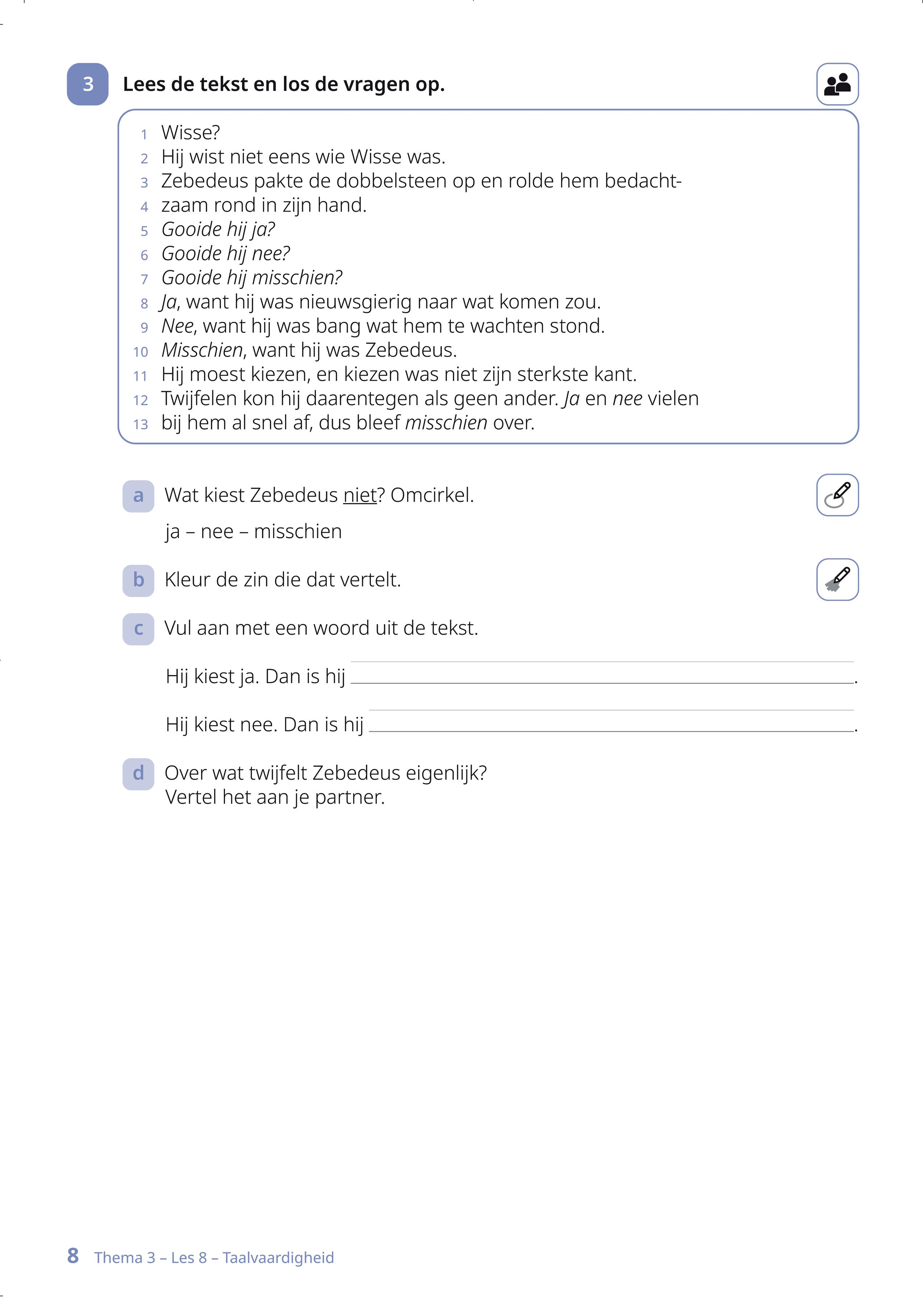 Dit leermiddel is onderdeel van de lesmethode Taaltoer van Uitgeverij VAN IN. Het is ontwikkeld met de intentie dat iedere leerling zich herkent en thuis voelt in beeld en tekst. Heb je op- of aanmerkingen, dan kun je contact opnemen met Uitgeverij VAN IN.