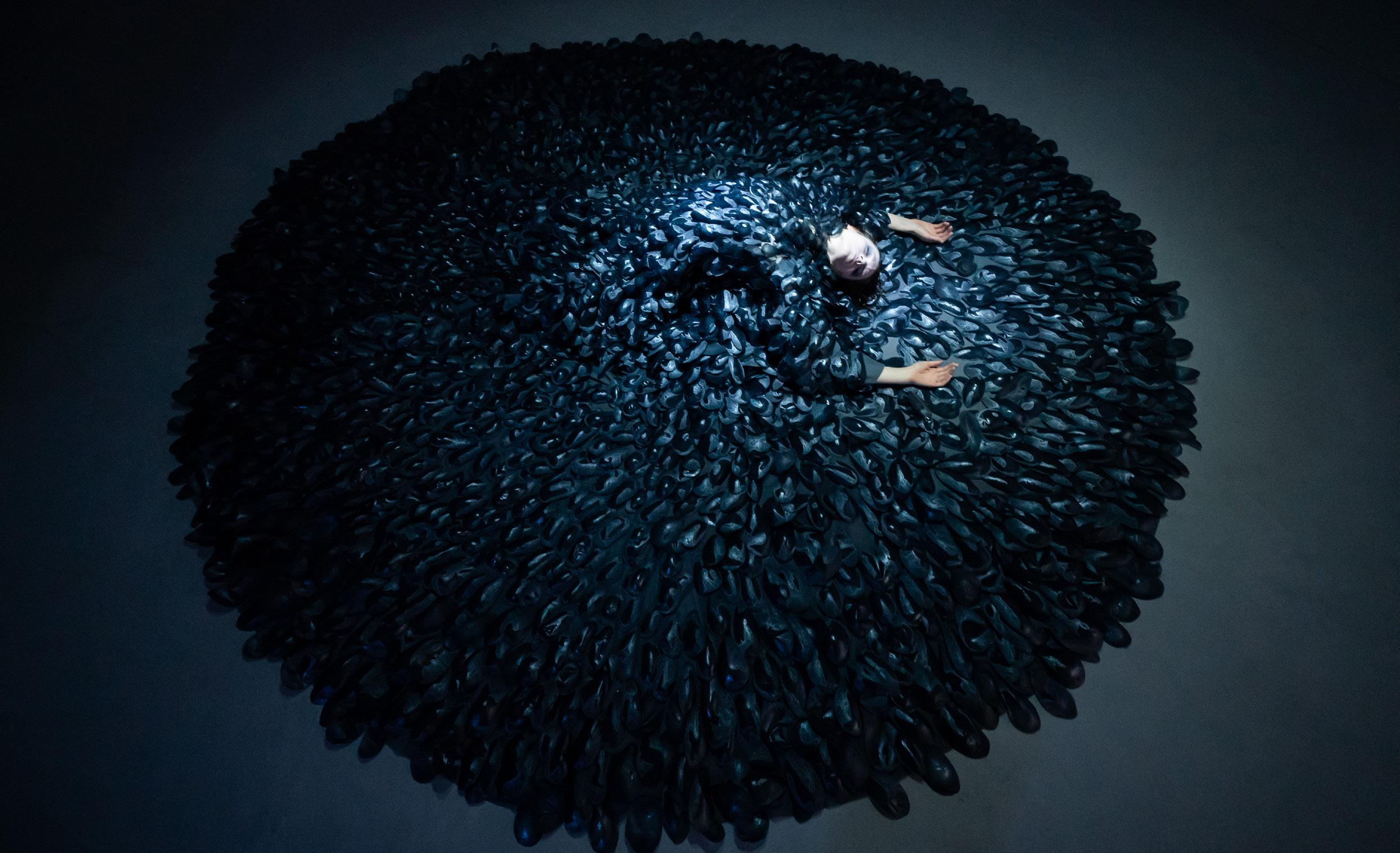 Voor het eerst creëert Scapino Ballet Rotterdam een ervaring waarin je als bezoeker niet alleen kijkt, maar er middenin staat. Net voor en tijdens Rotterdam Art Week opent het Katoenhuis zijn deuren voor een route door verschillende ruimtes vol half-organische, half-technologische wezens en installaties. In één ruimte lijkt een lichaam te zweven in een watertank, in een andere ruimte doemt een zwarte slijmbak op waarin menselijke vormen zich langzaam verliezen en weer hervinden. Ergens anders beweegt een jurk van honderden stukjes autoband over een danser, ritselend als een mechanische rivier.