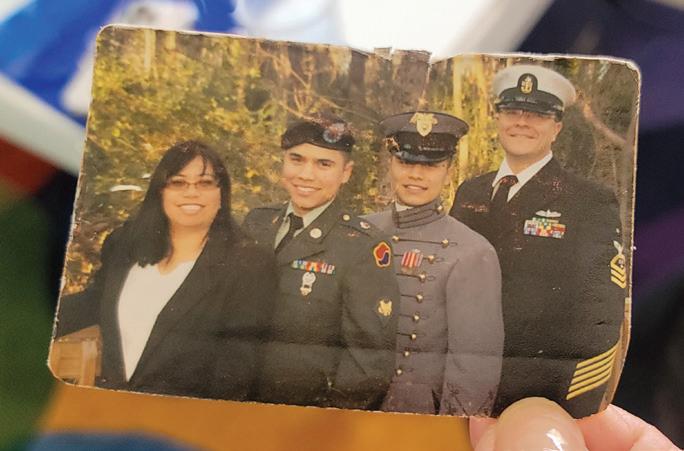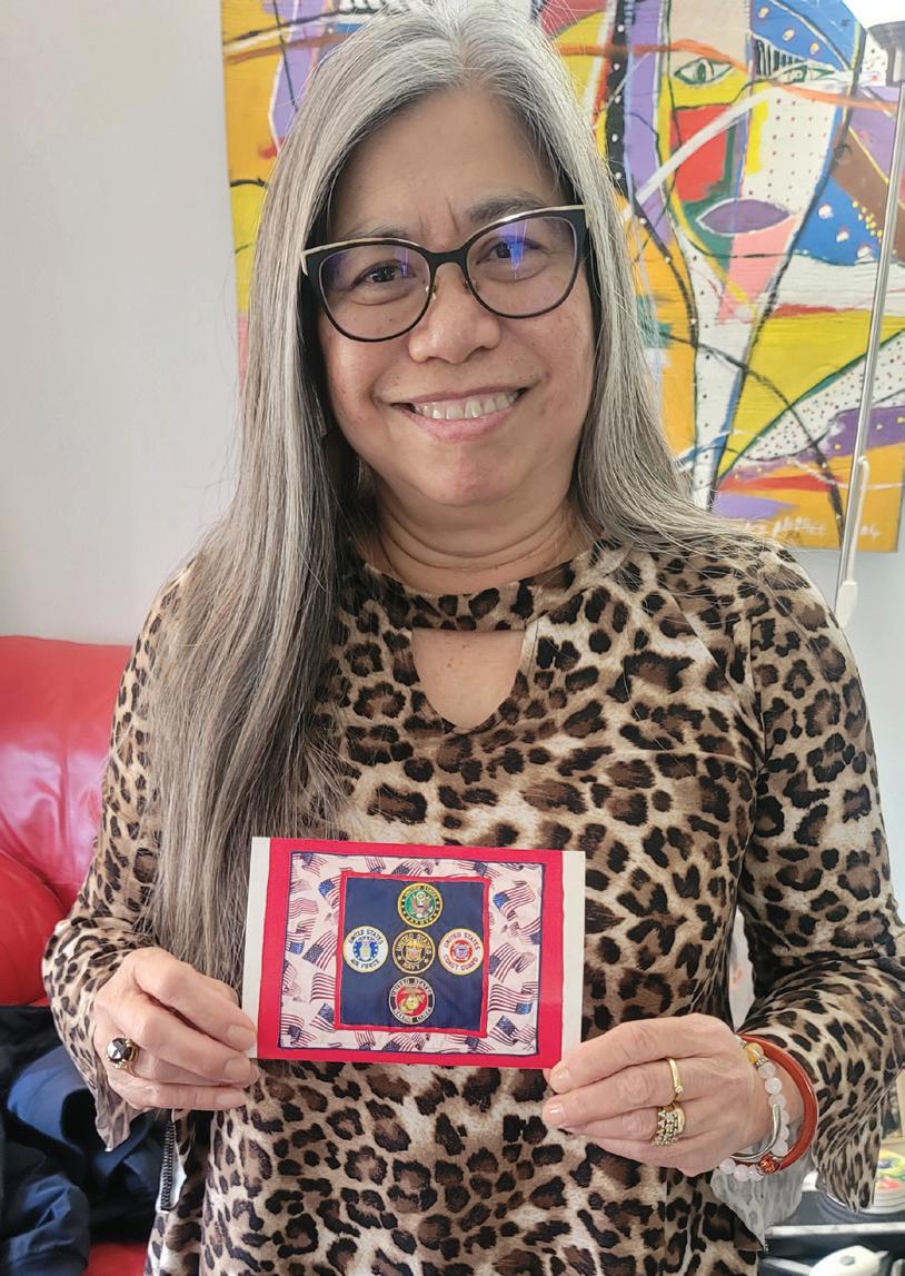 “The directions said we could take inspiration from anywhere such as inspiring people, places we love, landmarks, quotes, or historic events,” says Gruber. “For me it was an easy choice.” Turns out the Hawaiian-born third generation Filipino American and so-called “Army brat” was married to Larry, a Jewish sailor whom she met in New Jersey. “So, I was a Navy wife and then became an Army mom” when her twin sons enlisted, one