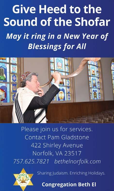 Oct. 7 Community Commemoration. Join Tidewater’s new Shinshinim in the Campus Sukkah for a short ceremony to recognize and remember the atrocities of October 7, honor the lives lost, and acknowledge the hostages still being held captive. 9 am. Sandler Family Campus. Information: JewishVA.org/Shinshinim or Nofar Trem at NTrem@UJFT.org. See page 32.