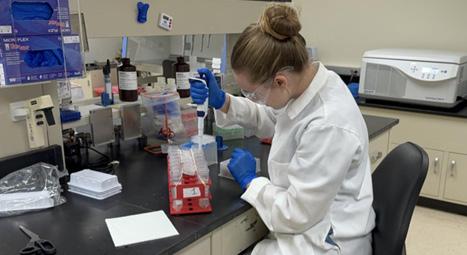 ANNA TURLINGTON, AN UNDERGRADUATE STUDENT, IS SHOWING WORKING IN DR. ALLEN PAGE’S LAB. PHOTO COURTESY DR. ALLEN PAGE.