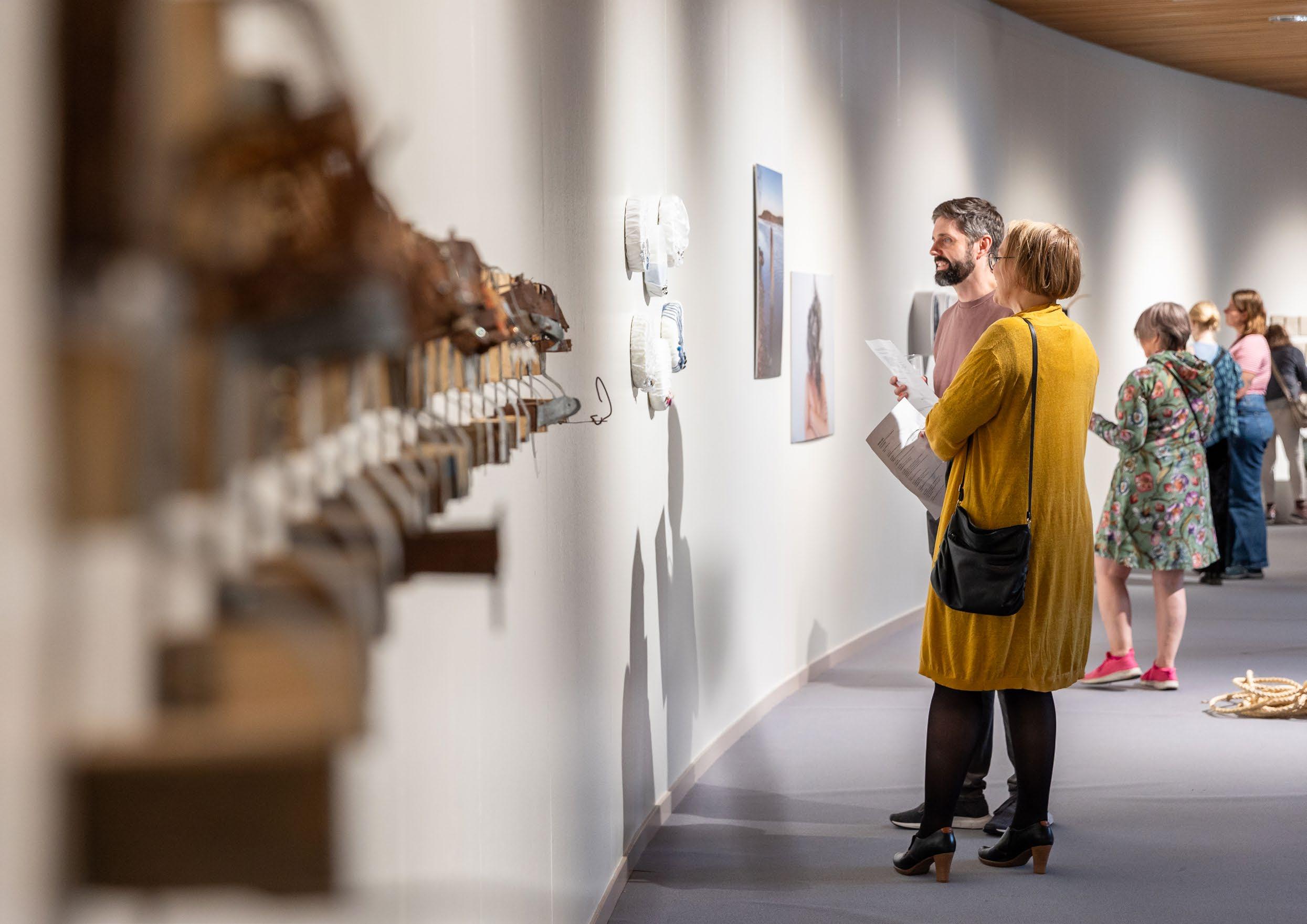 Ihmisen jälki -näyttelyn teokset edustavat kuvataiteen lajeja laajasti. Esillä on kuvanveistoa, valokuvaa, piirustusta, maalausta, installaatioita ja