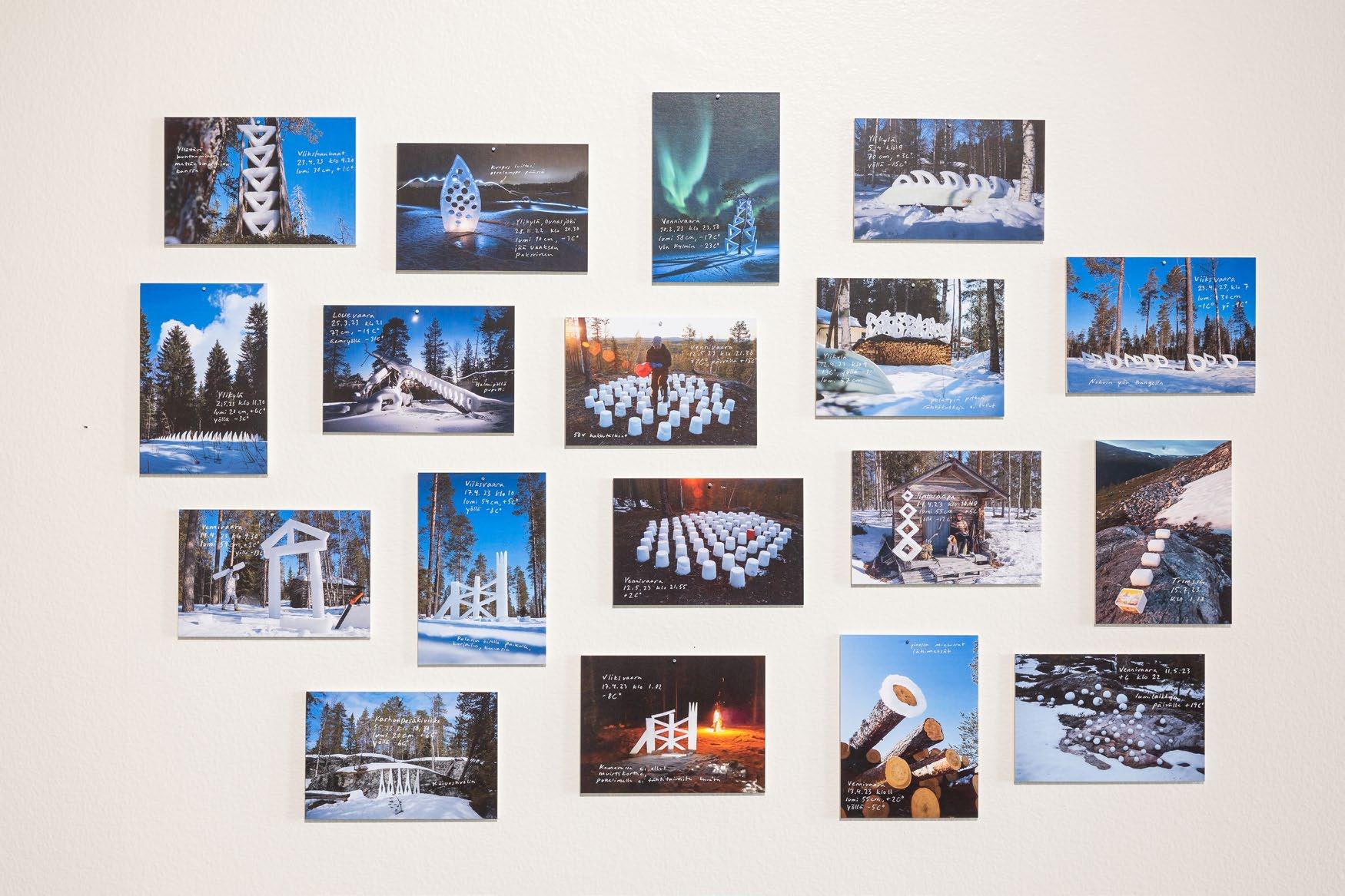 – ihmisen jälkeä luonnossa ja luonnon jälkeä ihmisessä. Työskentelin hetken lumen, jään ja vanhojen valokuvien kanssa. Niittyladoilla ahertaneet ihmiset olivat kanssani, kun luin heidän päiväkirjojaan latojen seiniltä.