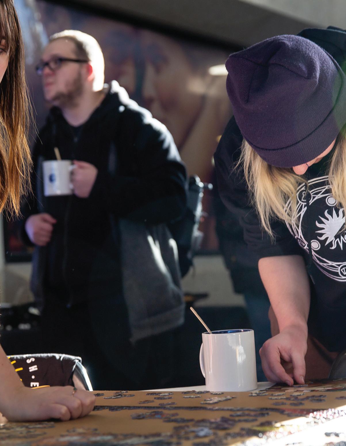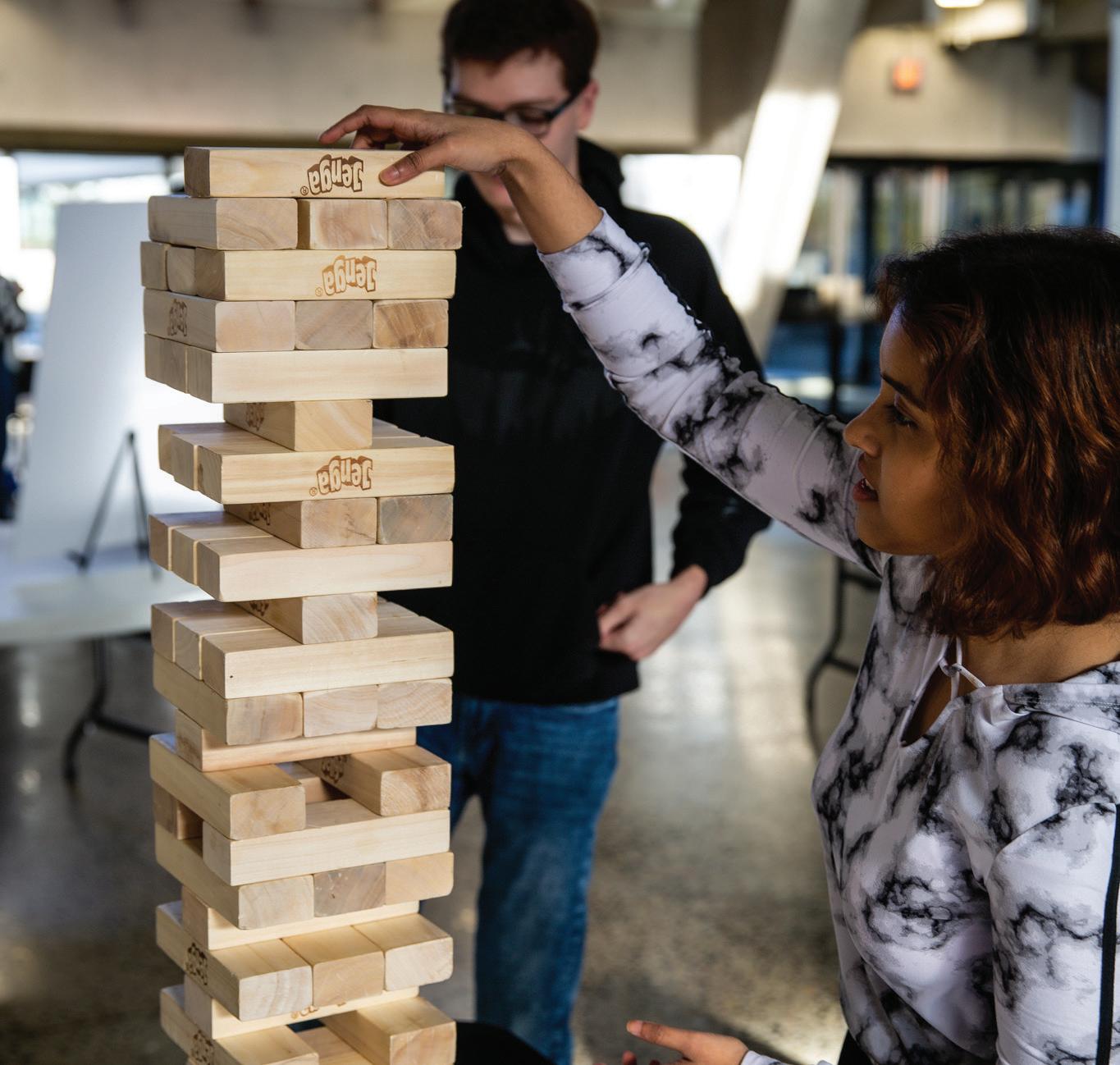 R.E.C. Rooms are multi-site campus hubs where students can get away from the stress of studying or research to meet new people, blow off some steam and relax. There are areas for chatting or zoning out, playing VR games, puzzles, giant chess and art hives, or being active by playing Foosball and ping pong.