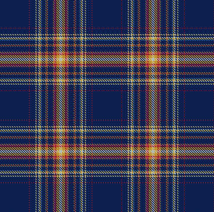 The University of Lethbridge tartan was a 50th anniversary legacy project unveiled on Founders’ Day Weekend in January 2017. The tartan design is inspired by convocation and the grand accomplishment it signifies. Faculty colours are incorporated in the tartan and the colours come together with the bright sunburst against the dark blue field. A frame of red honours the name given to University Hall, Iniskim (Sacred Buffalo Stone).