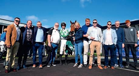 The FitzGerald family of Randox presenting the trophy to Trish and Ian Donoghue after Dunboyne’s success in the Randox Ulster National. Marc Coppez , Trish Donoghue, Ian Donoghue, Dr Peter FitzGerald, Nuailin FitzGerald and Nicola FitzGerald.