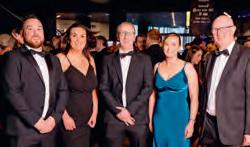Pictured is Mark Carruthers, Petra and Bill Wolsey with James Nesbitt.