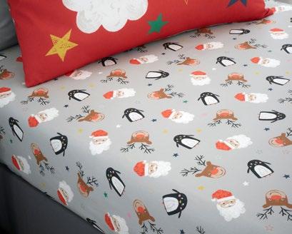 Santa and his favourite helpers are the stars of this sweet, seasonal duvet set. Printed on cosy easy care polycotton, these cheeky chaps bring a playful charm to festive bedtimes. There’s a contrasting dot design on the reverse too.